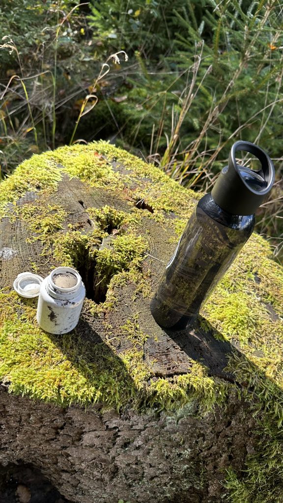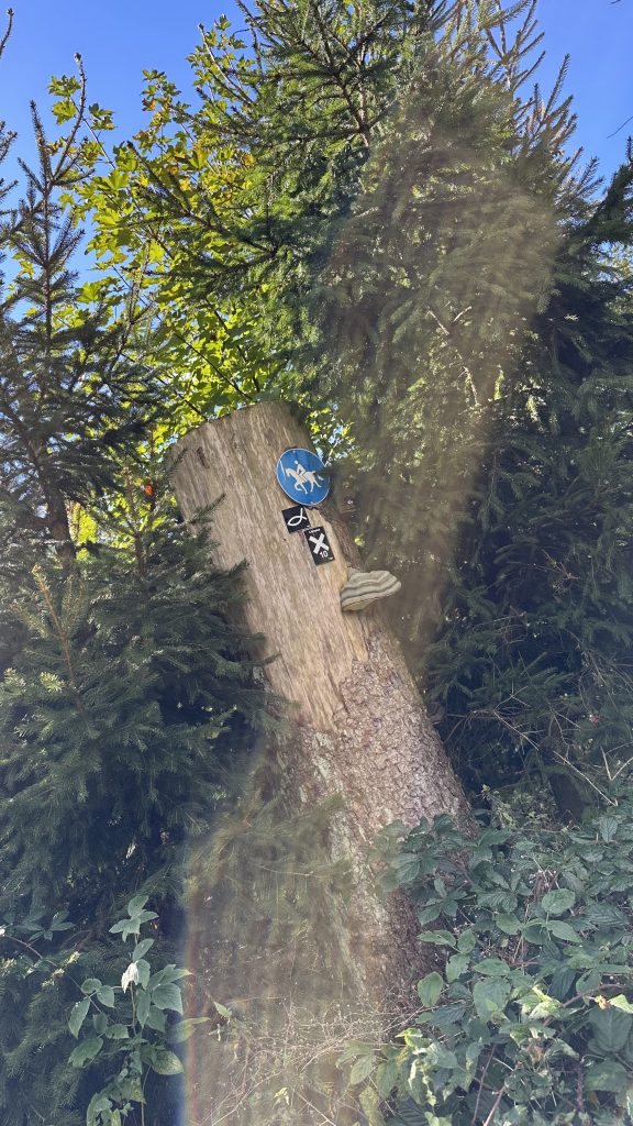 Die Runde, ohne auf die Details eingehen zu wollen (Spoiler), ist gemütlich zu gehen, führt über Wander- und Waldwege und ist sehr ruhig. Dem guten Wetter und der Jahreszeit folgten nur wenige andere Wanderer. Geocacher trafen wir keine, dafür tummelten sich ein paar Gruppen von Pilzsammlern rechts und links der Wege.