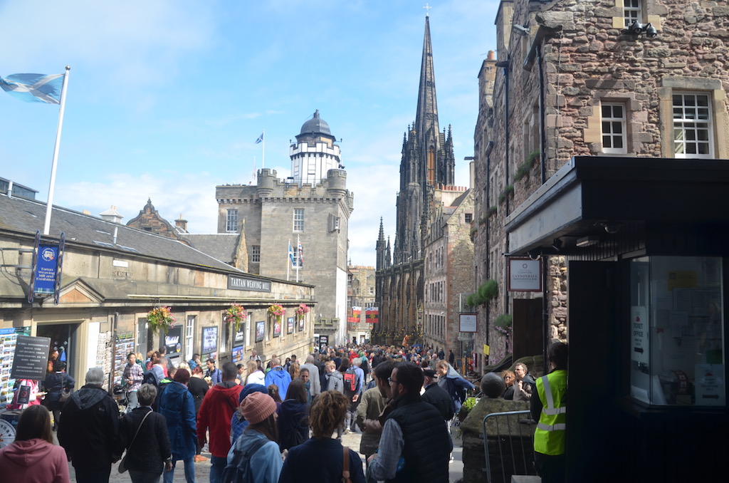Den Rückweg bin ich dann im Bus gefahren – ich habe mir ein Tagesticket für 4 Pfund geholt um später noch weiter mit dem Bus die Stadt zu erkunden. Tat ich dann doch nicht und wanderte stattdessen Mittags wieder zu der Royal Mile, hoch an das Edinburgh Castle, wo ich gestern auch zum Royal Edinburgh Military Tattoo war. Ich wollte mehr über die Museen und das Kleinkunstfestival wissen, die und das ich da gestern gesehen habe und so klapperte ich die Meile ab.